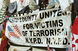 This is a recreation of the memorial that went up around St Pauls Chapel - which once stood across the street from the World Trade Center. PAGE 3